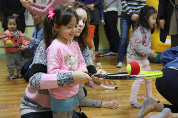 엄마와 아빠, 할머니, 그 외 가족등이 아이와 함께 말랑말랑한 다양한 공을 만져 보고 굴려도 보고 아이를 안고 함께 움직이며 즐거운 시간을 보내는 동안 김영섭 강사가 프로그램 진행에 앞서 설명한 쉽고 재미있는 테니스를 이해하는 시간을 가졌다. 아이들을 위한 기자재의 안정성과 사물을 관찰하며 움직이는 동작이 아이들의 성장발육과 밀접함을 중간 중간 설명 하였는데 함께 참관한 학부모들의 좋은 반응을 얻어 2015년도 사업 반영에 기여하는 계기가 되었다. 유치원에서의 프로그램 운영은 아이들의 숨은 잠재능력을 일찍 찾아줄 수 있을 뿐만아니라 테니스 저변확대에도 큰 역할을 할것이다.