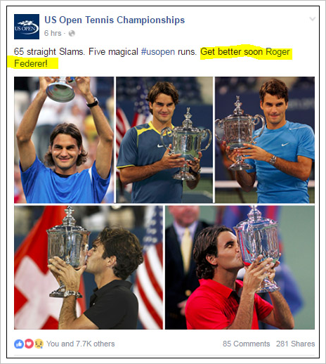 "나는 올해 프랑스 오픈에서 재생하지 않는 결정을 한 것을 발표 후회. 내 전반적인 체력과 꾸준한 진전을 만들어왔다,하지만 난 아직도 100 %이고 내가 정말 준비하기 전에이 이벤트에서 재생하여 불필요한 위험을 감수 할 수있는 느낌 "페더러는 자신의 페이스 북 페이지에 게시 발표했다. "이 결정은 만들 쉽지 않았다,하지만 난 시즌의 나머지 부분을 할 수 있도록 내 경력의 나머지 부분을 확장하는 데 도움을했다."